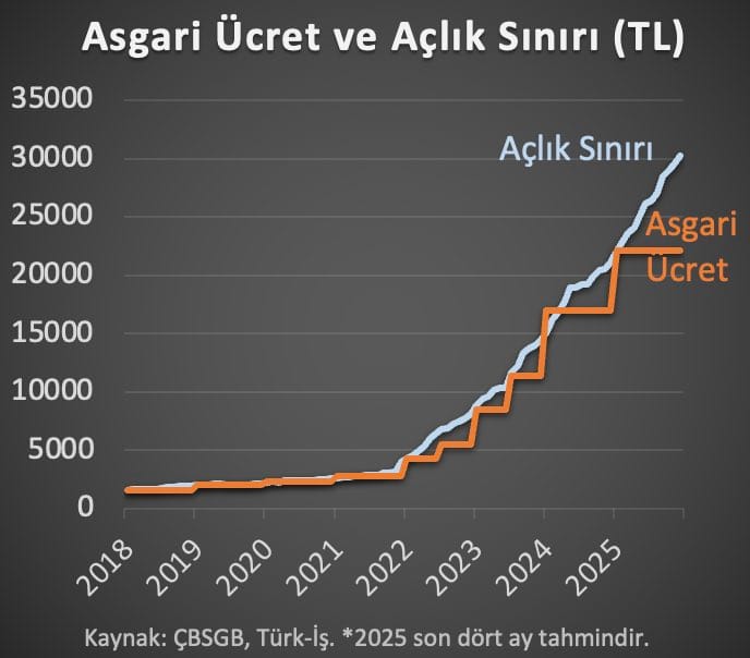 Kara’nın açıklamasına göre, 2025 yılı sonunda asgari ücret, açlık sınırının yüzde 36 altında kalacak. Bu durum, milyonlarca asgari ücretli için ciddi bir gelir kaybına işaret ediyor.